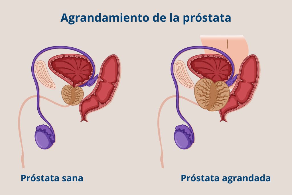 - Hiperplasia prostática benigna (HPB): crecimiento natural de la próstata que ocurre con el envejecimiento.