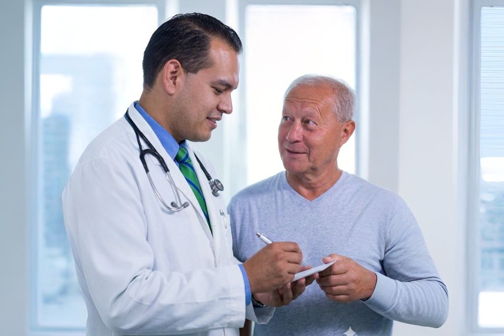 La primera consulta consiste en una conversación detallada para revisar tu historial médico, analizar el resultado del laboratorio y realizar un examen físico que puede incluir tacto rectal si es necesario.